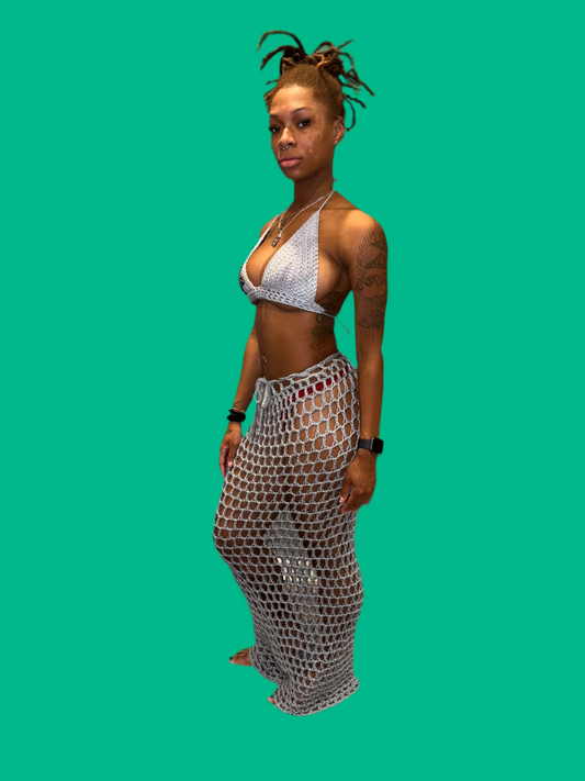 Long Blue Mesh Skirt